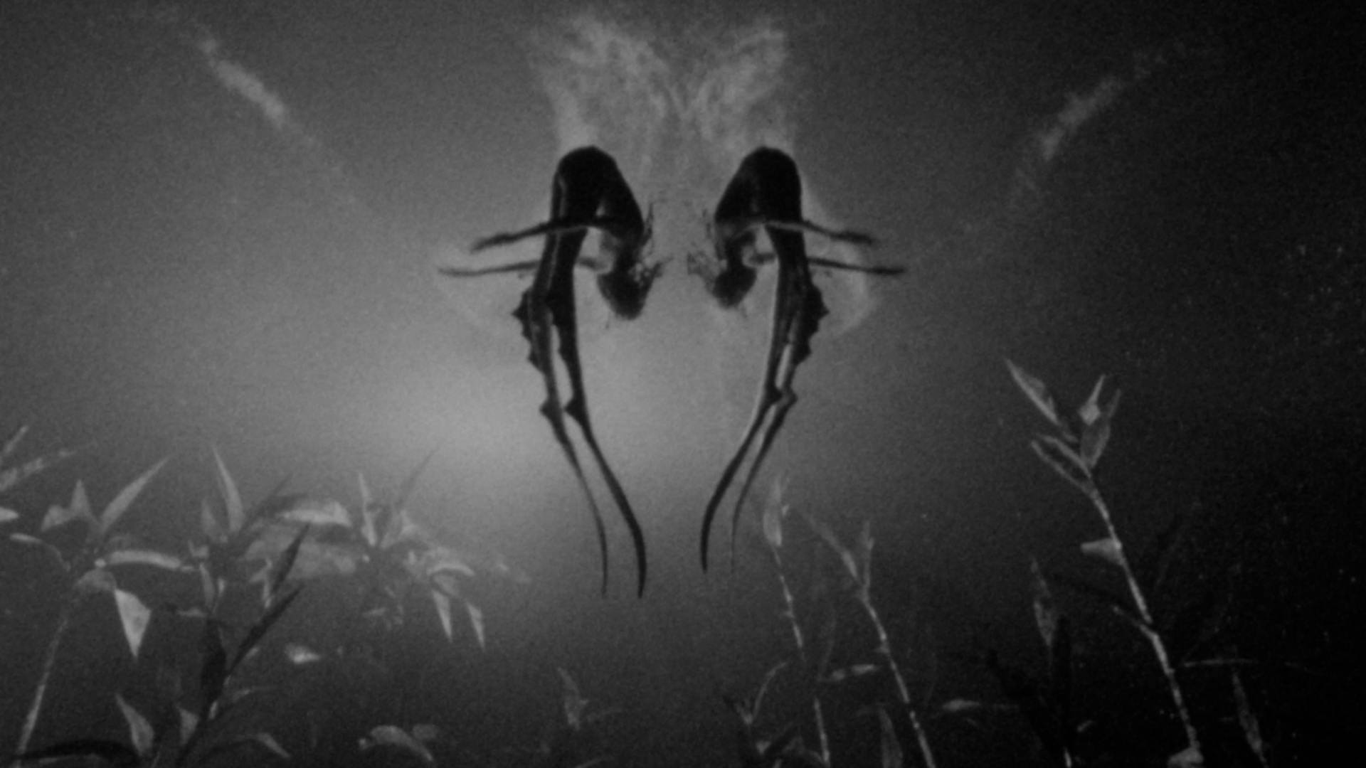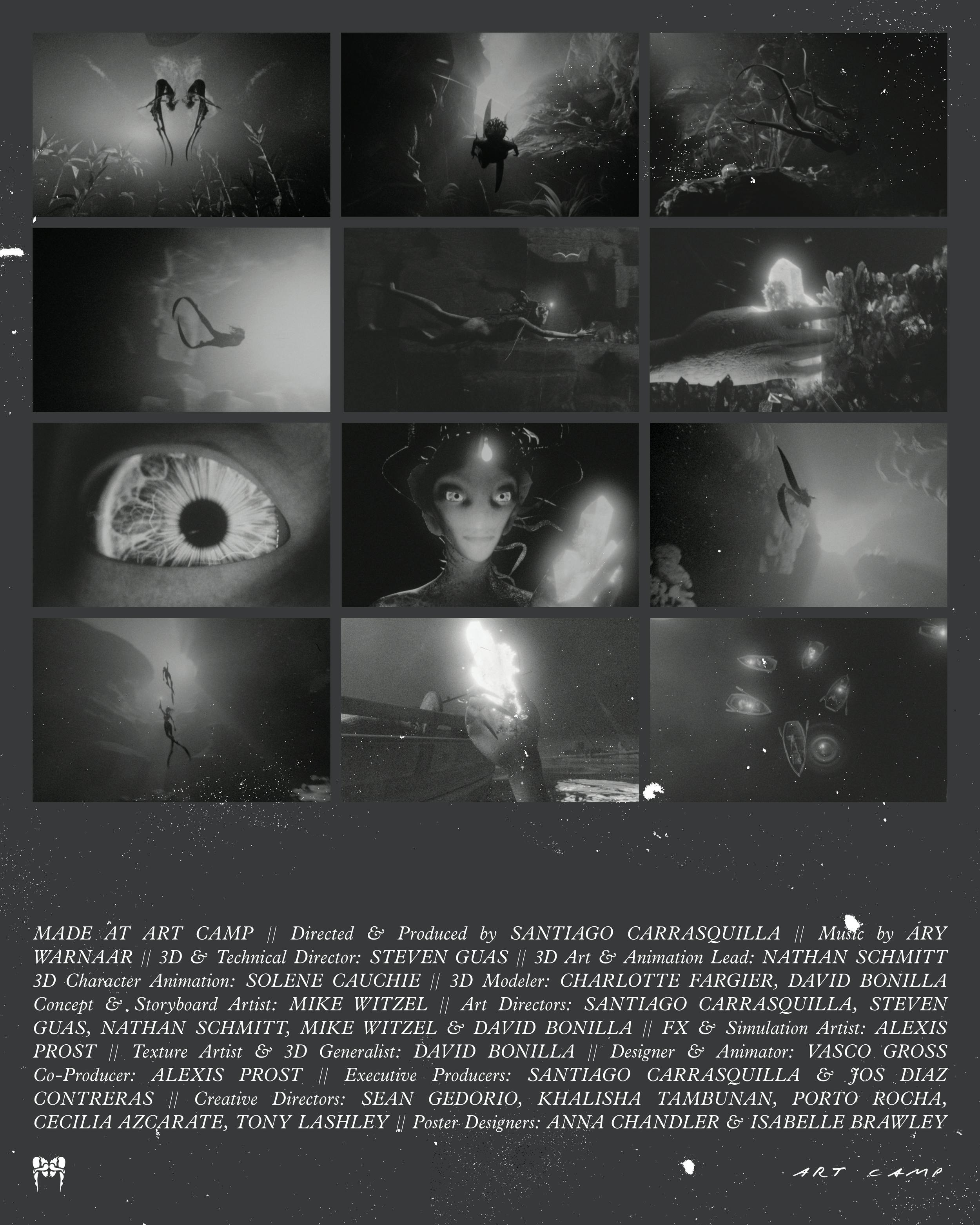 3D short film created for Marine Snow and transferred to 16mm to achieve its distinctive grain and texture. The piece features two glowing, abstract sea-like creatures drifting through a dark, dreamlike underwater space, blending digital animation with the organic qualities of analog film for a quiet, hypnotic descent into the deep.